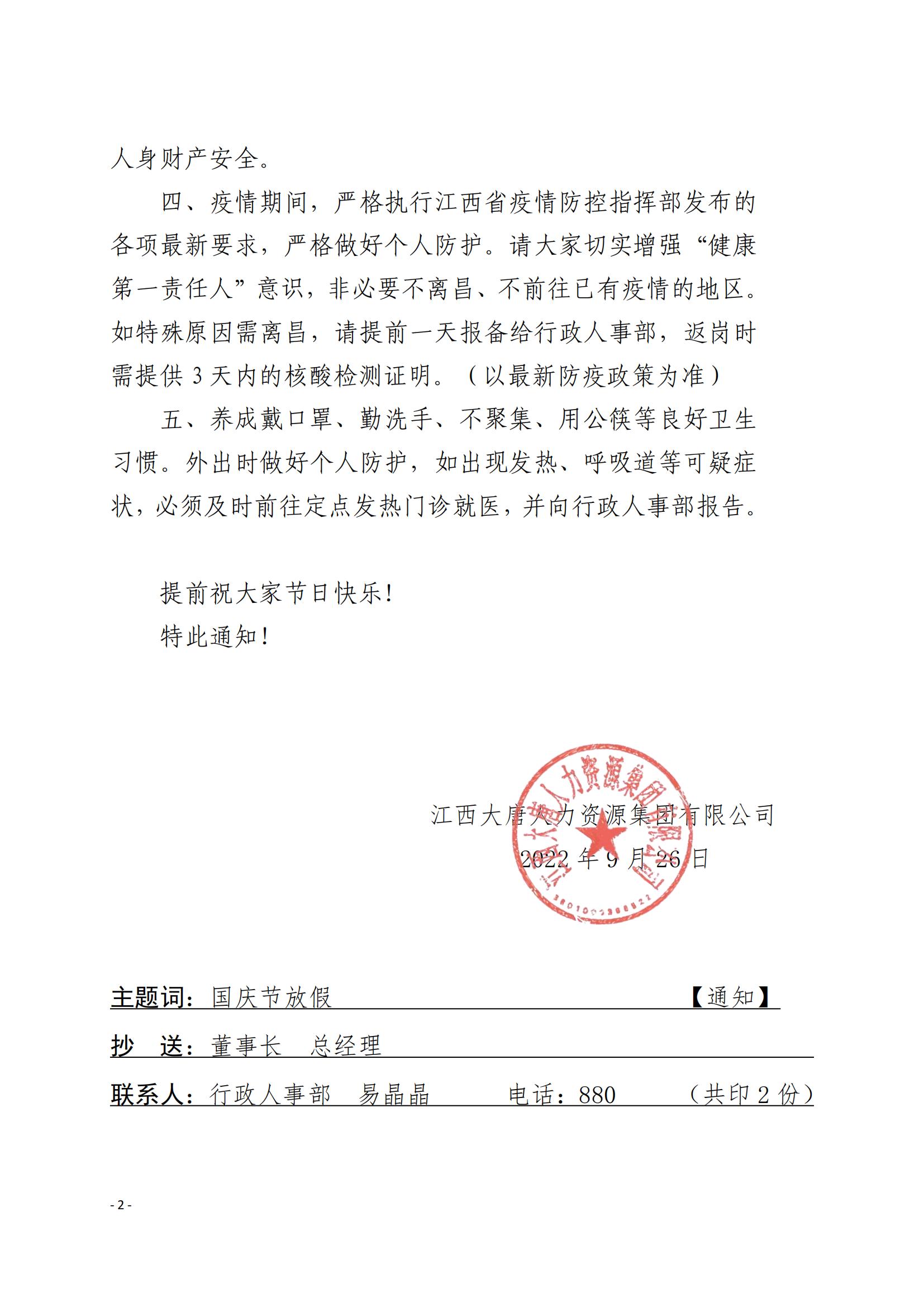 關(guān)于國慶節(jié)放假的通知