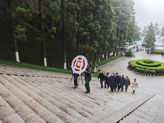 敬獻(xiàn)花圈儀式開(kāi)始,首先由董事長(zhǎng)李民上前整理挽聯(lián),然后全體人員肅立,向革命烈士默哀鞠躬,表達(dá)對(duì)先烈們的沉痛悼念。現(xiàn)場(chǎng)氣氛莊嚴(yán)肅穆,每個(gè)人的臉上都寫(xiě)滿了對(duì)革命先輩的敬仰和緬懷。