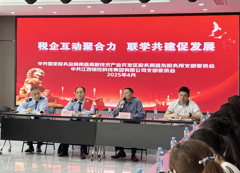 2025年4月28日下午,南昌高新區(qū)稅務局昌東稅務所黨支部聯(lián)合青年理論學習小組成員及黨員代表,與銀控集團黨支部在銀控集團會議室開展稅企座談會。高新區(qū)稅務局黨委書記、局長喻子近出席活動,昌東稅務所黨支部書記羅時武主持會議。