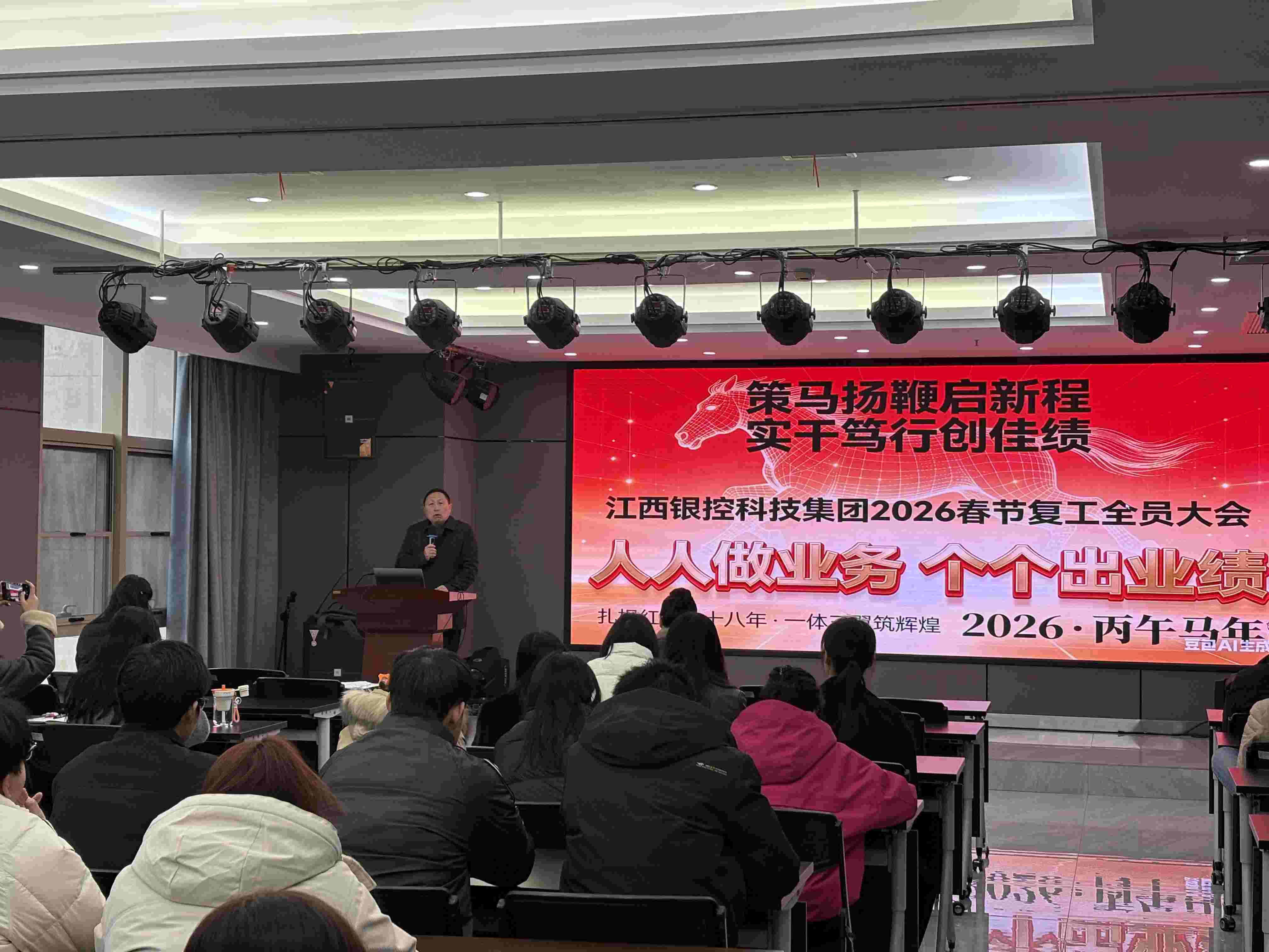 春回大地,萬象更新。2月24日(正月初八),農歷丙午馬年首個工作日,江西銀控科技集團在昂揚奮進的氛圍中隆重召開2026年春節(jié)復工全員大會。集團董事長李民出席大會并發(fā)表主旨講話,號召全體員工迅速收心歸位、聚焦主業(yè)、團結擔當,以“起步就是沖刺、開局就是決戰(zhàn)”的奮斗姿態(tài),全力沖刺一季度“開門紅”,奮力譜寫集團高質量發(fā)展新篇章。